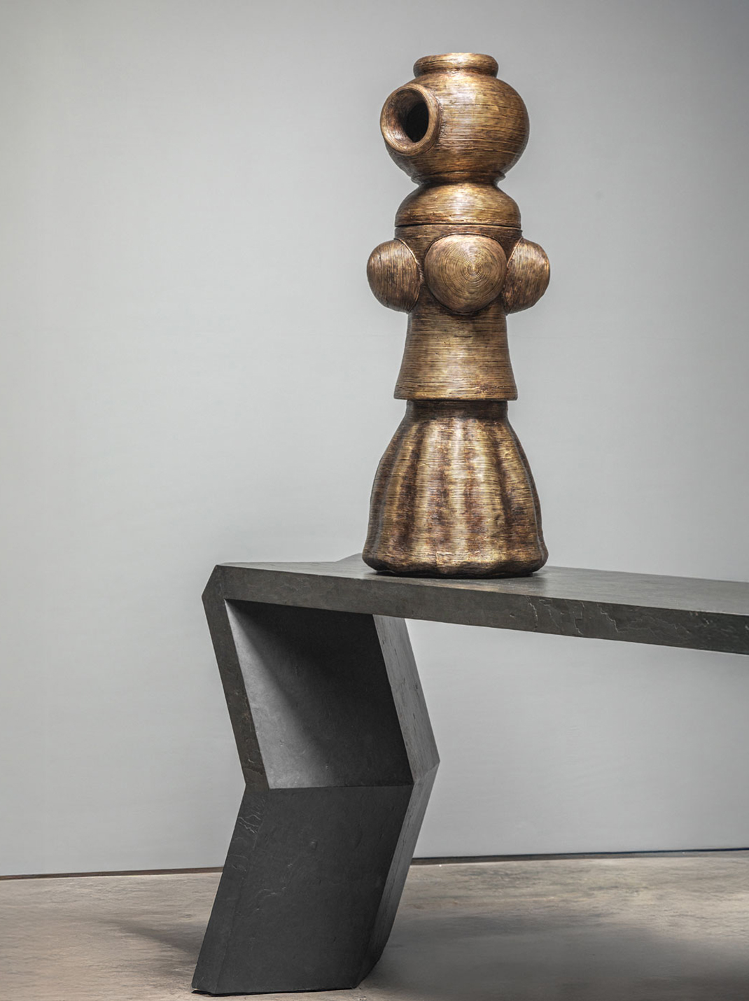 Inspired by one of the earliest known lost wax artifacts in the world - the dancing girl of Mohenjo-daro, the Dhokra Doll Vase deconstructs the feminine form into a trio of 3 stacked containers in the still surviving ancient lost wax craft technique of East India thereby artfully combining mastercraft with contemporary design.