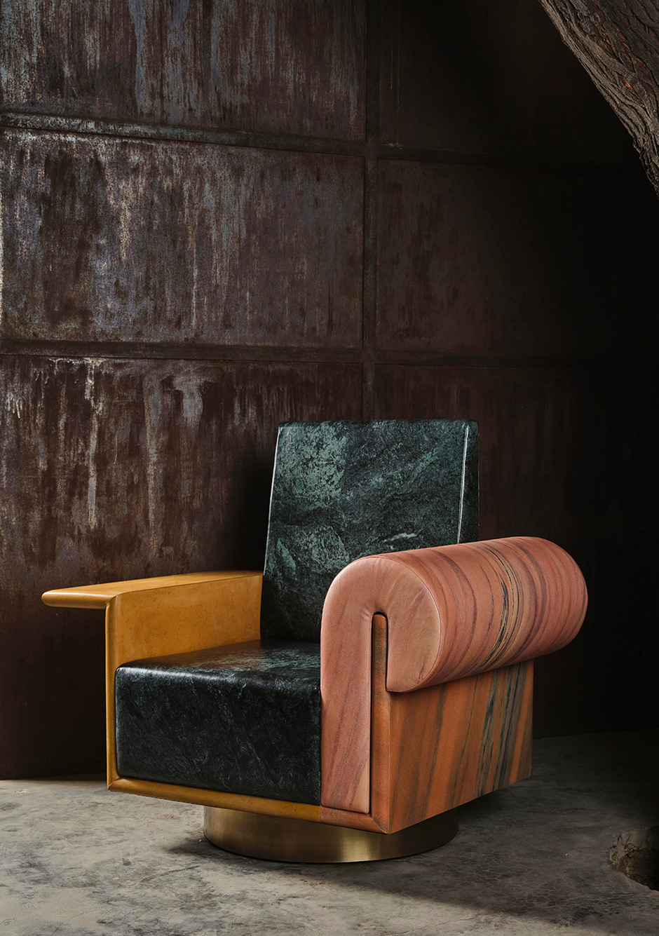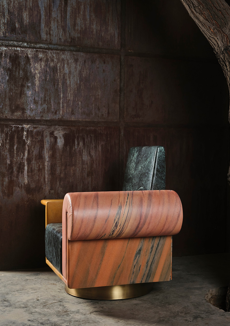 where digitally printed leather and stone come together to create a surprise element of comfort not associated with stone.