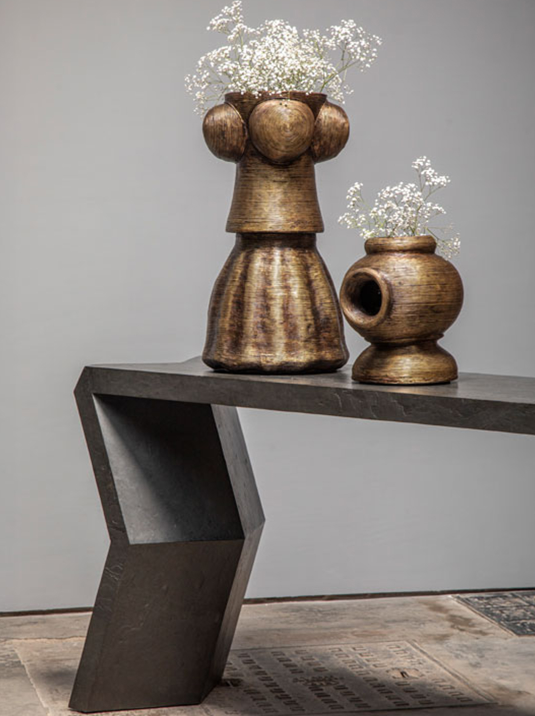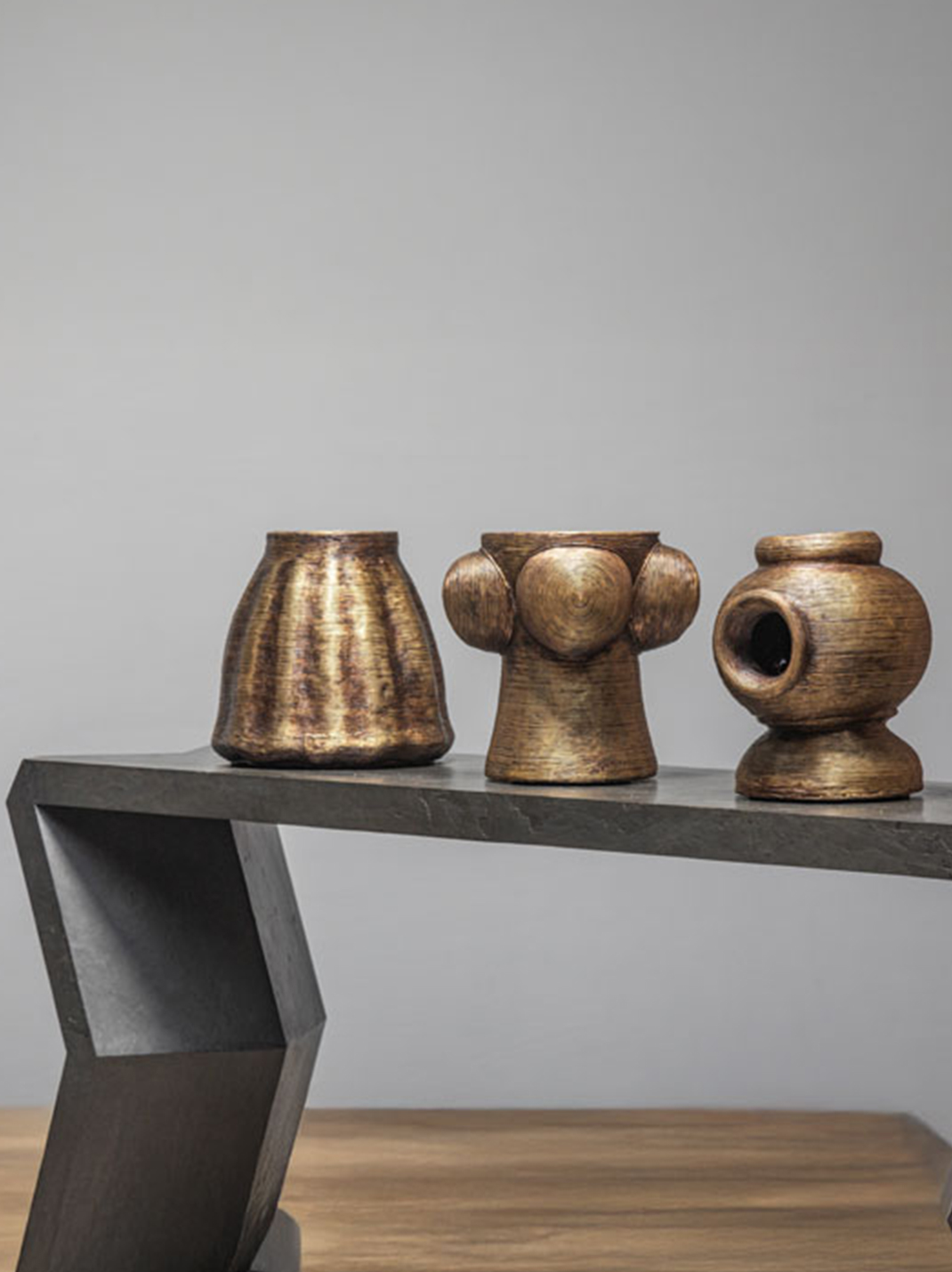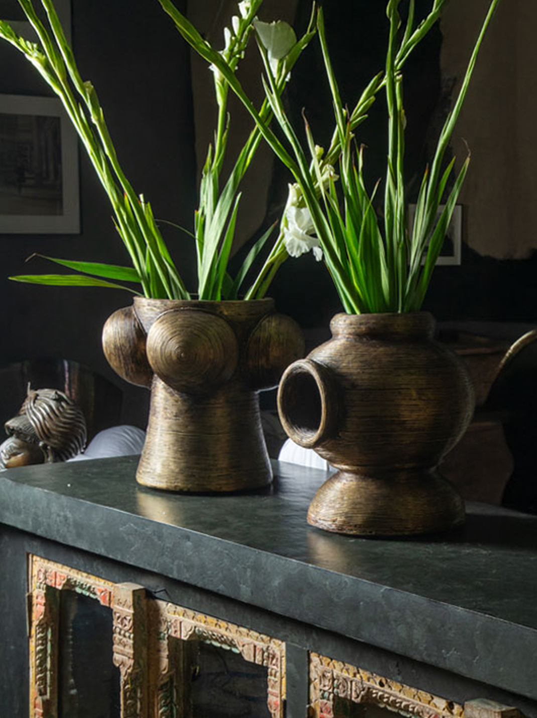 Inspired by one of the earliest known lost wax artifacts in the world - the dancing girl of Mohenjo-daro, the Dhokra Doll Vase deconstructs the feminine form into a trio of 3 stacked containers in the still surviving ancient lost wax craft technique of East India thereby artfully combining mastercraft with contemporary design.